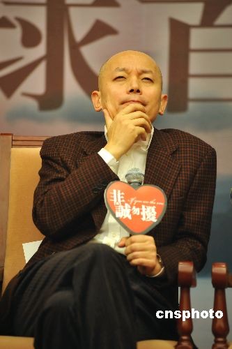 12月16日,馮小剛賀歲喜劇《非誠勿擾》在北京召開首映發(fā)布會。圖為葛優(yōu)在發(fā)布會現(xiàn)場表情搞怪。中新社發(fā) 李學仕 攝