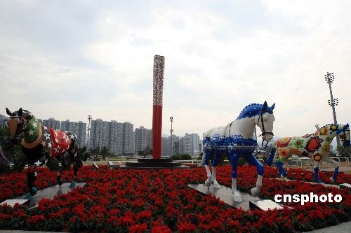 著名的香港沙田馬場(chǎng),2008年成為首個(gè)迎接北京奧運(yùn)圣火的奧運(yùn)比賽場(chǎng)地,載入奧運(yùn)史冊(cè)。為了打造香港“馬運(yùn)之都”,香港將建立“奧運(yùn)博物館”,位于沙田馬場(chǎng)中央“彭福公園”內(nèi)的“奧運(yùn)圣火盆”,也將成博物館珍品。中新社發(fā) 潘索菲 攝