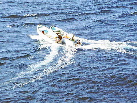 12月17日早上當(dāng)?shù)貢r(shí)間8時(shí)。亞丁灣。2艘白色小艇向“振華4號”整機(jī)運(yùn)輸船駛來,在賊艇距離“振華4號”大約4海里處,船長彭維源果斷拉響了全船警報(bào)!