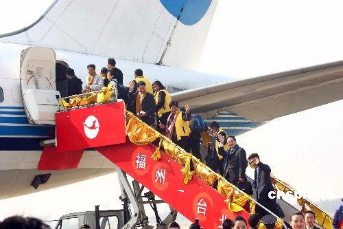 12月18日中午,由廈門航空公司執(zhí)飛的波音757-200機(jī)型的MF883航班從福州長(zhǎng)樂(lè)機(jī)場(chǎng)滿載起飛首航臺(tái)灣。中新社發(fā) 祝敏松 攝