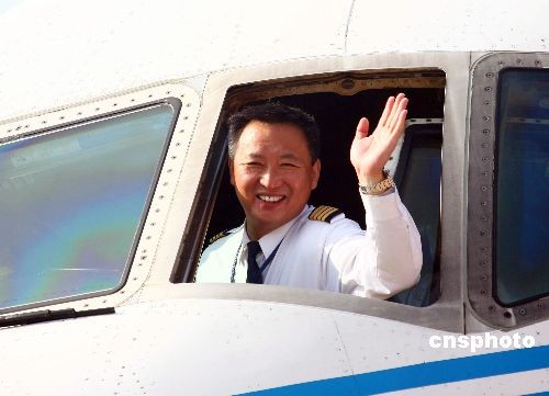 福州至臺(tái)北直航首航機(jī)長(zhǎng)關(guān)鍵向大家致意。