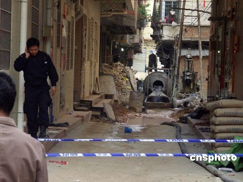 12月19日下午4時(shí)15分,廣州市白云區(qū)夏茅村沙園坊因路面塌陷導(dǎo)致兩棟房屋下沉6米,其中一棟倒塌,周圍10余棟房屋傾斜或出現(xiàn)裂縫。目前,有關(guān)部門(mén)對(duì)以事故現(xiàn)場(chǎng)為中心、周圍約100米為半徑的區(qū)域進(jìn)行封鎖,1000多名居民被疏散出來(lái)。中新社發(fā) 劉君鳳 劉蛟 攝