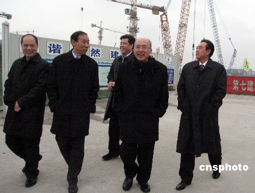 12月21日,正在上海參加第四屆兩岸經(jīng)貿(mào)文化論壇的中國國民黨主席吳伯雄,在海協(xié)會會長陳云林等人的陪同下,參觀了上海虹橋綜合交通樞紐工地,了解工程進度。中新社發(fā) 許曉青 攝