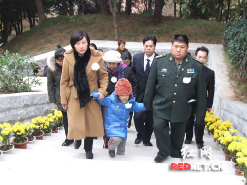“親愛的爸爸媽媽永遠(yuǎn)活在我們心中!”“爺爺奶奶永遠(yuǎn)活在我們心中!”在毛岸青、邵華同志的墓前,擺放著毛新宇、劉濱和毛東東敬獻(xiàn)的花籃。