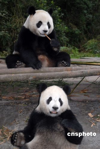 2008年12月,圓圓很貪吃 ,團(tuán)團(tuán):“我的那份竹子呢?”。中新社發(fā) 羅小韻 攝