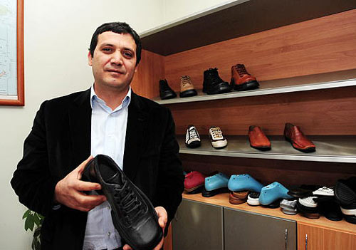 12月22日,在土耳其伊斯坦布爾,巴伊丹制鞋廠老板拉馬贊·巴伊丹展示自己鞋廠生產(chǎn)的一款皮鞋。