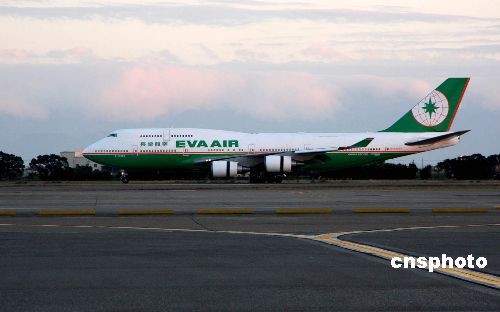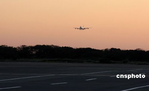臺(tái)灣長(zhǎng)榮航空運(yùn)送大陸贈(zèng)臺(tái)大熊貓“團(tuán)團(tuán)”、“圓圓”的專機(jī),在晚霞的映襯下平穩(wěn)順利降落在臺(tái)灣桃園機(jī)場(chǎng)。