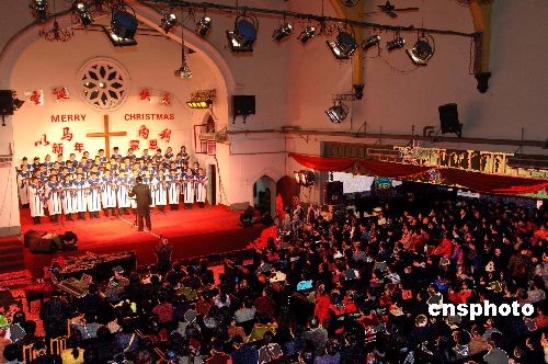 圣誕節(jié)平安夜,在福州的教徒們?cè)诮烫贸?shī)祈禱。中新社發(fā) 鄭祚聲 攝