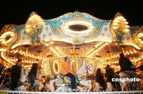 12月24日晚,是西方傳統(tǒng)節(jié)日圣誕節(jié)的平安夜,在山東濰坊市區(qū)富華游樂(lè)園內(nèi),熊熊的篝火、歡快音樂(lè)、色彩艷麗的花車(chē)使人完全沉浸在了節(jié)日歡樂(lè)的海洋之中。中新社發(fā) 張馳 攝