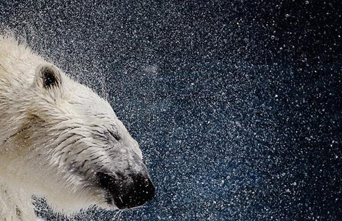 正在抖去身上水的北極熊,獲得“濕漉漉的野生動(dòng)物”獎(jiǎng)的提名。