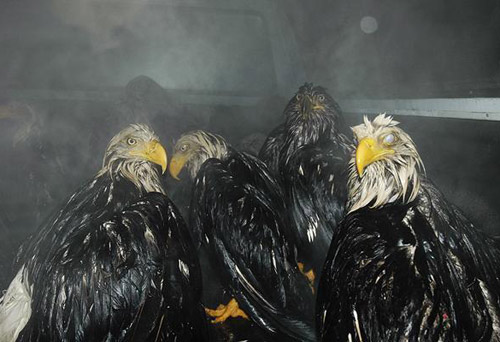 一群濕漉漉的禿鷹,獲得“濕漉漉的野生動(dòng)物”獎(jiǎng)的第二名。