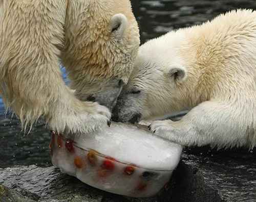 正在吃生日蛋糕的兩只北極熊,也參與了“最貪吃”的競(jìng)爭(zhēng)。