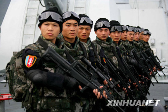 12月25日,威武的中國(guó)海軍特戰(zhàn)隊(duì)員在軍艦甲板上列隊(duì)。