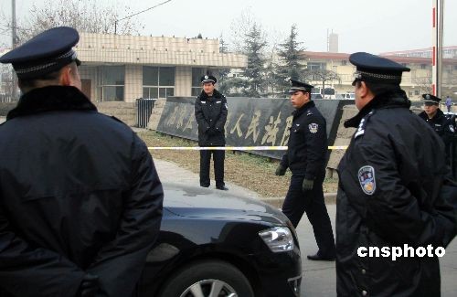 12月26日起,震驚全國(guó)的三鹿奶粉案在河北陸續(xù)開(kāi)庭審理。當(dāng)日上午,石家莊市中級(jí)人民法院開(kāi)庭公開(kāi)審理張玉軍、張彥章非法制售三聚氰胺案。 三鹿奶粉事件發(fā)生后,張玉軍、張彥章被石家莊市人民檢察院“以危險(xiǎn)方法危害公共安全”罪提起公訴。圖為警方在法院門口拉起警戒線。