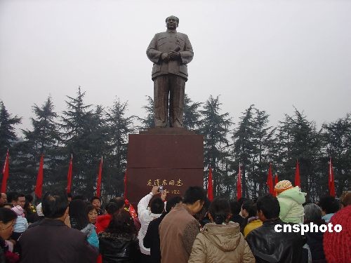 12月26日清晨,在韶山毛澤東廣場,從中國各地趕來的民眾懷著對毛主席的思念和對未來的祝福,齊唱《東方紅》紀念毛澤東誕辰115周年。中新社發(fā) 肖前輝 攝