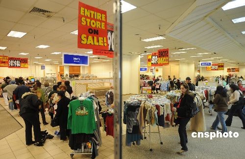 當(dāng)?shù)貢r間十二月二十七日,洛杉磯附近的一家Mervyns百貨店進(jìn)入破產(chǎn)關(guān)門前的最后一天大甩賣,全場商品一律一折甩賣,連貨架也在甩賣之列,眾多消費者前來撿便宜。受美國經(jīng)濟(jì)衰退的影響,擁有五十九年歷史的美國老牌連鎖百貨公司Mervyns今年夏天宣布破產(chǎn)倒閉,由于沒有找到接手的公司,最終該公司宣布旗下一百四十九家商店進(jìn)行清貨銷售,然后關(guān)門停業(yè)。中新社發(fā) 張煒 攝