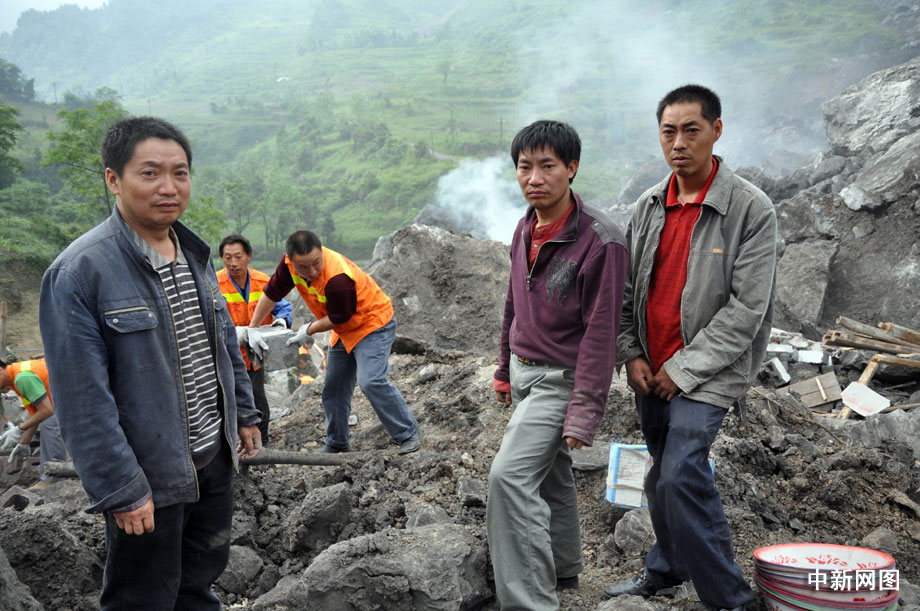 6月7日下午,黃建華(左)、黃昆華(中)和黃彬華三兄弟一直在垮塌民房旁守候。黃建華告訴記者,這家47歲的男主人黃興華是他們的大哥。事故發(fā)生時(shí),黃興華和母親簡(jiǎn)德會(huì)、妻子葉添芬等親屬還都在屋內(nèi)。 曹多然 攝