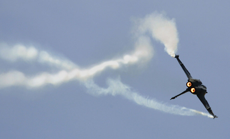 圖為法國陣風(fēng)戰(zhàn)斗機(jī)進(jìn)行飛行表演。