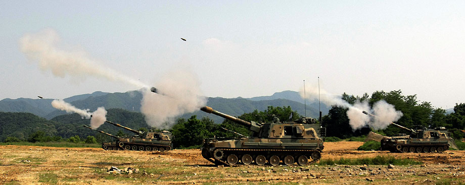 2009年6月18日,韓國(guó)陸軍在江原道江陵市海岸一帶舉行防范入侵的海岸哨所軍事演習(xí)。