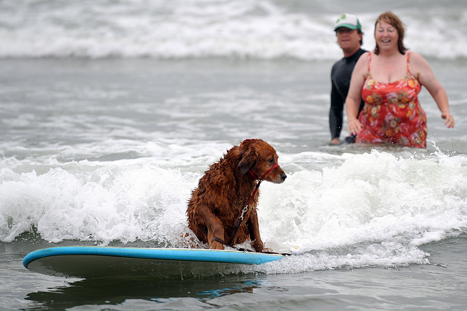 6月20日,在美國加利福尼亞州帝國沙灘舉行了一場小狗沖浪比賽,小狗們表現(xiàn)得十分認(rèn)真。