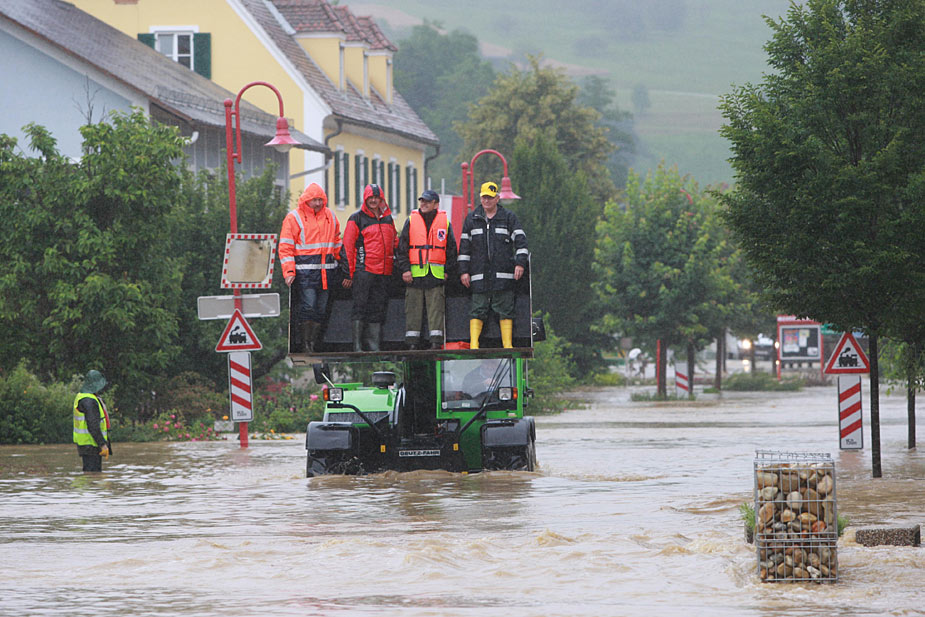 6月24日,奧地利部分地區(qū)由于連日降雨發(fā)生洪災(zāi)。當?shù)叵廊藛T緊急出動,用各種工具將災(zāi)民運往安全地帶。