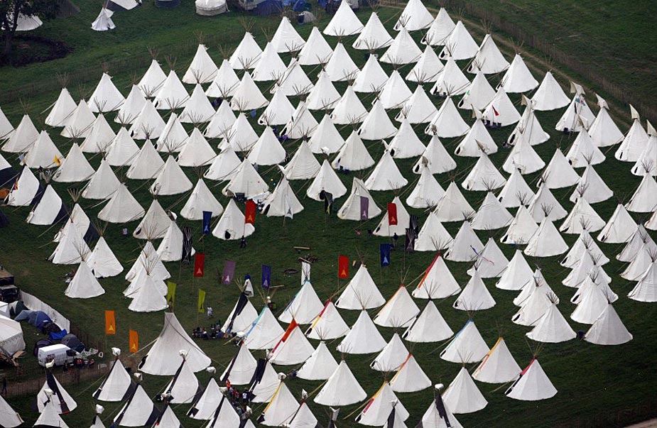 2009年格拉斯頓伯里音樂(lè)節(jié)在英國(guó)薩默塞特舉行,前來(lái)參加活動(dòng)的14萬(wàn)樂(lè)迷在宿營(yíng)地搭起密密麻麻的帳篷。格拉斯頓伯里音樂(lè)節(jié)是世界上規(guī)模最大的戶外音樂(lè)節(jié)之一。