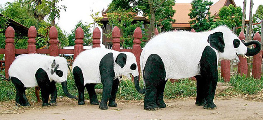 據(jù)英國(guó)媒體報(bào)道,近日,泰國(guó)因一只剛出生的熊貓陷入熱潮,泰國(guó)還準(zhǔn)備向公眾征集熊貓幼崽的名字。幾只大象也“妝扮”成熊貓的模樣,借此吸引人們的關(guān)注。