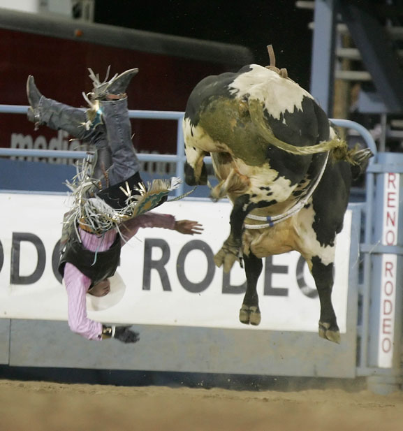 6月26日,在美國(guó)內(nèi)華達(dá)州舉行了一場(chǎng)驚險(xiǎn)刺激的騎牛大賽,各路馴牛勇士各顯身手,希望能夠征服這些狂野的莽牛。