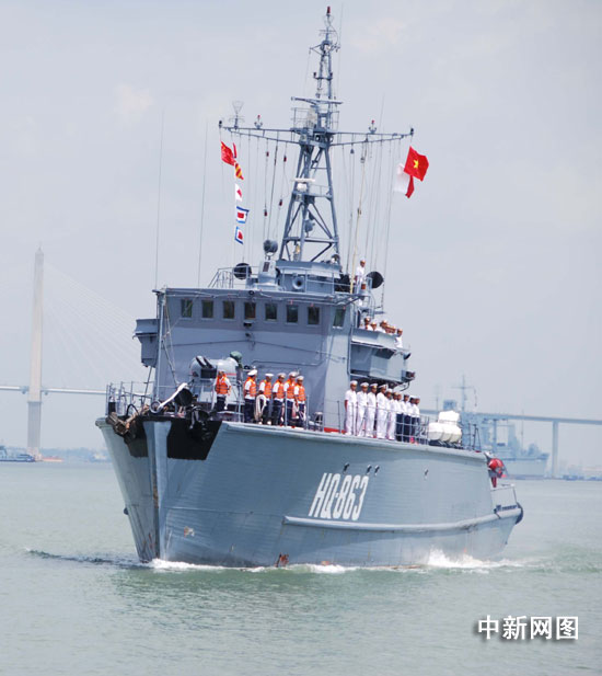 中新網6月28日電 6月24日至27日,越南海軍艦艇首次訪華。期間,筆者登艦參觀,對越南海軍掃雷艇有了初步了解。此次訪華的越南海軍艦艇編隊由兩艘掃雷艇組成,舷號分別為HQ863、HQ864,兩艘艇為同一型號,長49米,寬8.8米,滿載排水量430噸,裝備30毫米火炮和機槍等,隨艦訪問的越南海軍官兵共102人。(圖文牛志軍/韓海冰)