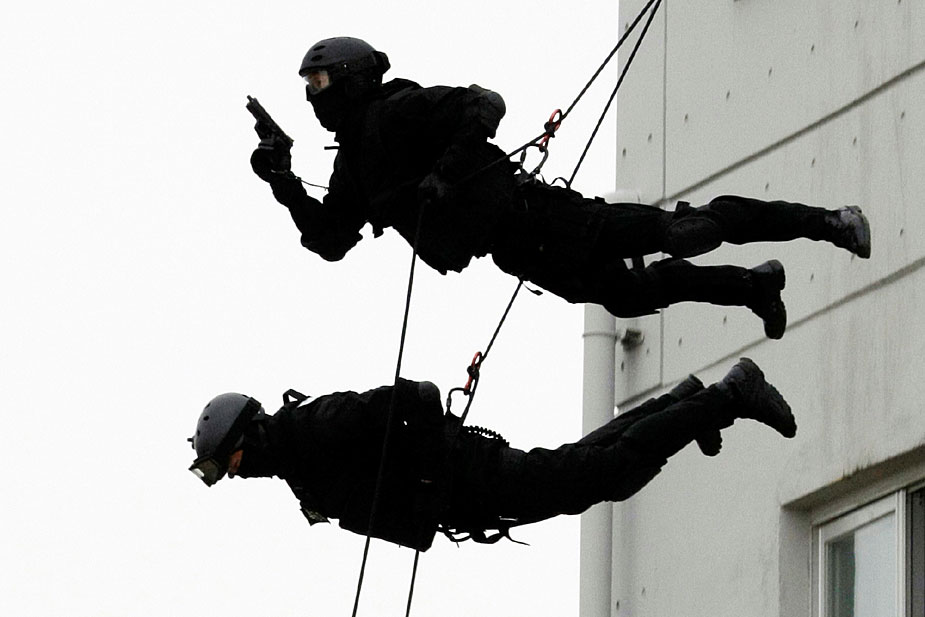 7月2日,韓國(guó)特警在韓國(guó)首都首爾市舉行了反恐演習(xí)。韓國(guó)特警先后表演了一系列高難度動(dòng)作,令人目不暇接。