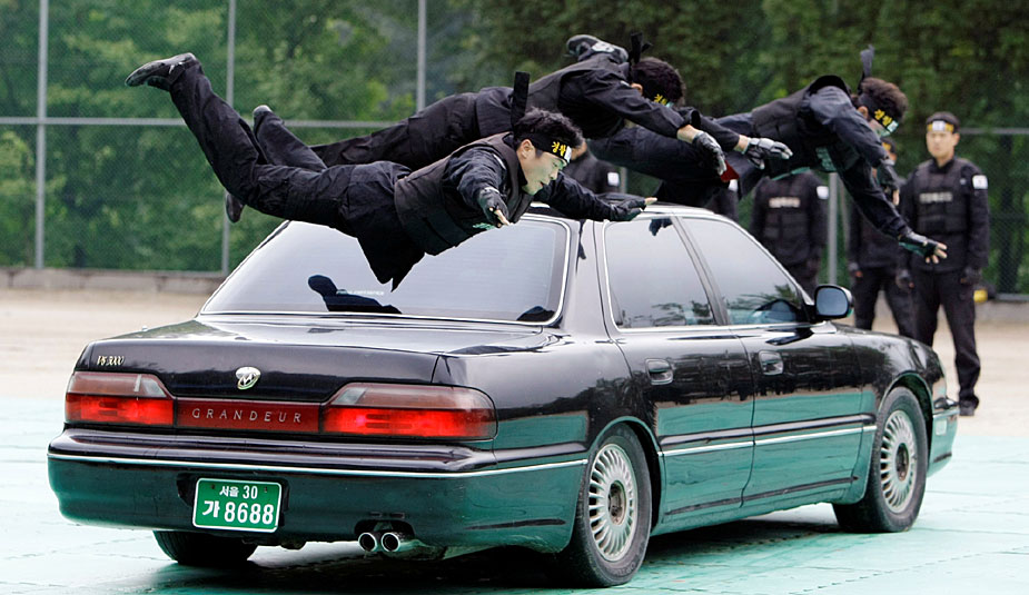 7月2日,韓國(guó)特警在韓國(guó)首都首爾市舉行了反恐演習(xí)。韓國(guó)特警先后表演了一系列高難度動(dòng)作,令人目不暇接。