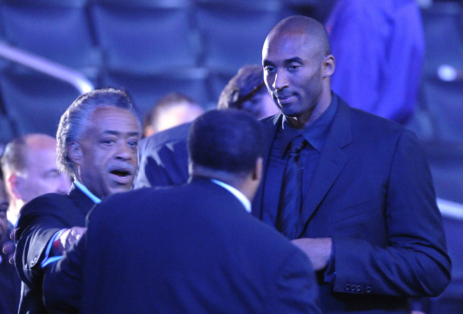 圖為籃球巨星科比現(xiàn)身邁克爾·杰克遜的追思會現(xiàn)場