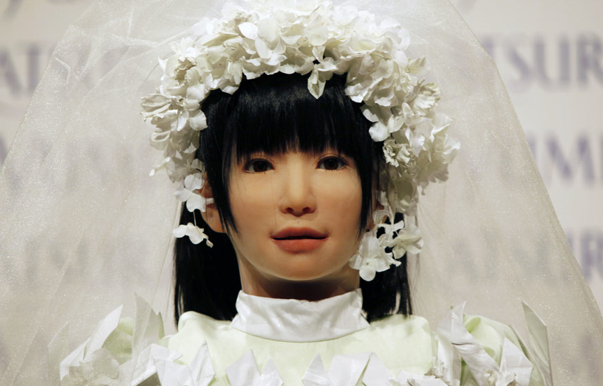 7月22日,日本大阪,類人機器人“HRP-4C”身穿由著名婚紗設(shè)計師為其量身定做的婚紗亮相。>>點擊觀看視頻