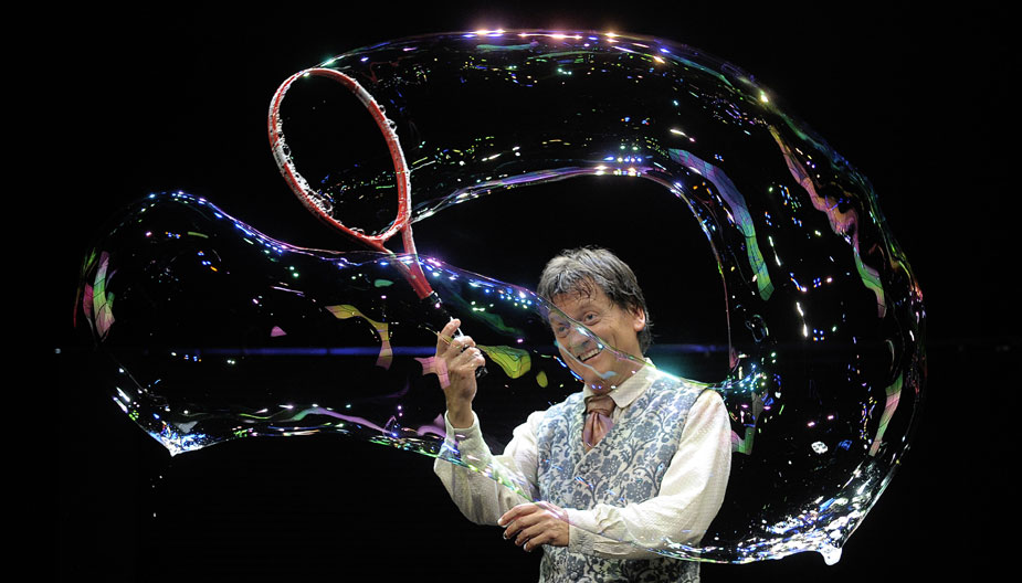 當(dāng)?shù)貢r間7月23日,西班牙國際肥皂泡藝術(shù)家皮蓬-玻爾在巴塞羅那進行肥皂泡藝術(shù)表演。