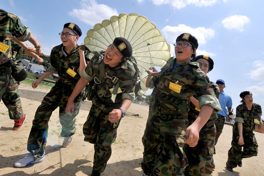 韓國中學(xué)生參加軍訓(xùn)夏令營