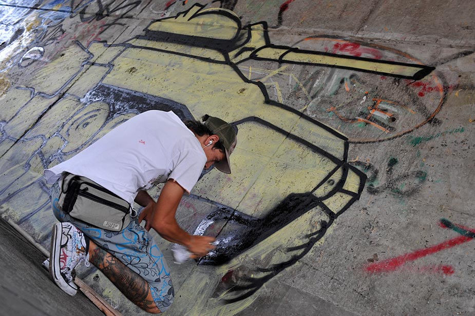 近日,哥倫比亞考卡山谷省卡利市的年輕人用涂料在墻上涂鴉,表達(dá)他們對(duì)世界的看法。