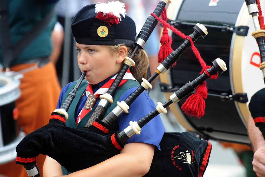 8月2日,拉薩爾童軍風(fēng)笛樂(lè)團(tuán)的一個(gè)小樂(lè)手在文化節(jié)上演奏風(fēng)笛。