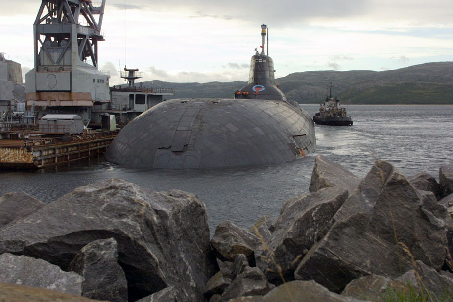 圖為?看a頭的俄軍臺(tái)風(fēng)級(jí)巨獸核潛艇。