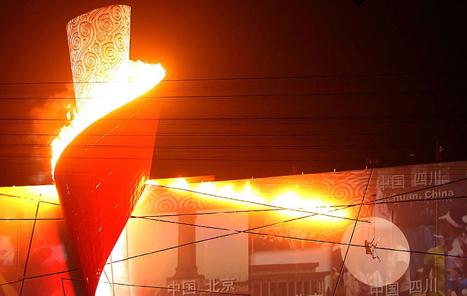 圣火點(diǎn)燃——主火炬點(diǎn)燃方式的“終極秘密”終于揭開,體操王子化身“空中飛人”,在空中繞鳥巢一周,踏著祥云長(zhǎng)卷,奔向主火炬……,此意向神似中國(guó)古典神話“夸父逐日”。氣勢(shì)宏大,構(gòu)思精巧,跳躍靈動(dòng)的點(diǎn)火方式為08奧運(yùn)開了個(gè)好彩頭。