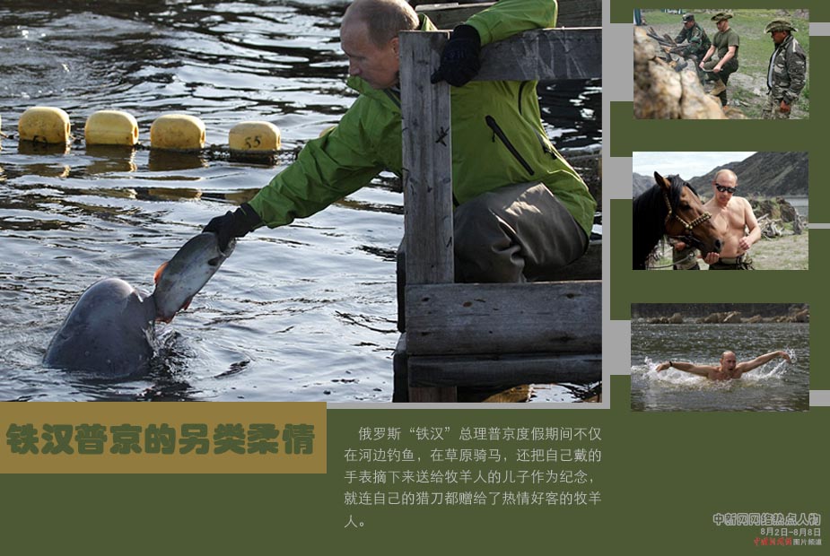 中新網(wǎng)本周熱點(diǎn)人物之普京——這兩天俄羅斯總理普京動(dòng)作頻頻,再度吸引世界關(guān)注的目光:7月31日,普京“戲”鯨展現(xiàn)溫情一面;8月1日,普京乘微型潛艇至世界最深淡水湖貝加爾湖水面下大約1400米處,探查新能源“可燃冰”;1日,普京還在訪問伊爾庫茨克地區(qū)的“塔爾茨建筑和民族博物館”時(shí)體驗(yàn)打鐵......