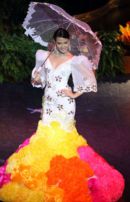 圖為菲律賓小姐馬納洛演繹民族服飾。
