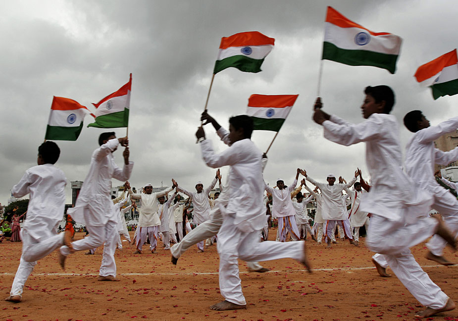 圖為印度民眾跳起歡樂的舞蹈,慶祝獨立62周年。