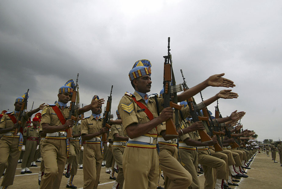 圖為慶祝獨立62周年閱兵式上的印度士兵。