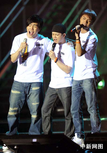 圖為胡彥斌、側(cè)田、張敬軒現(xiàn)場(chǎng)演出。