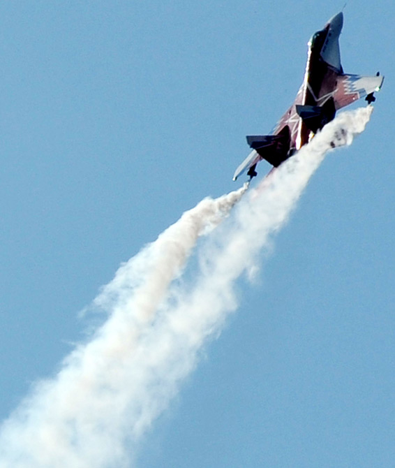 8月18日,2009莫斯科國際航空航天展(MAKS-2009)開幕。圖為精彩的飛行表演。