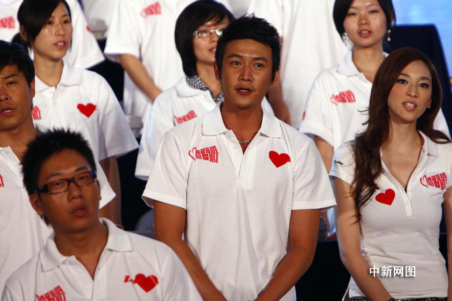 “跨越海峽的愛心”——大陸同胞援助臺(tái)灣“莫拉克”臺(tái)風(fēng)受災(zāi)同胞賑災(zāi)晚會(huì)在北京舉行。眾多文體界明星在現(xiàn)場(chǎng)亮相,獻(xiàn)出一片愛心。圖為陸毅在賑災(zāi)晚會(huì)上。中新社發(fā) 杜洋 攝