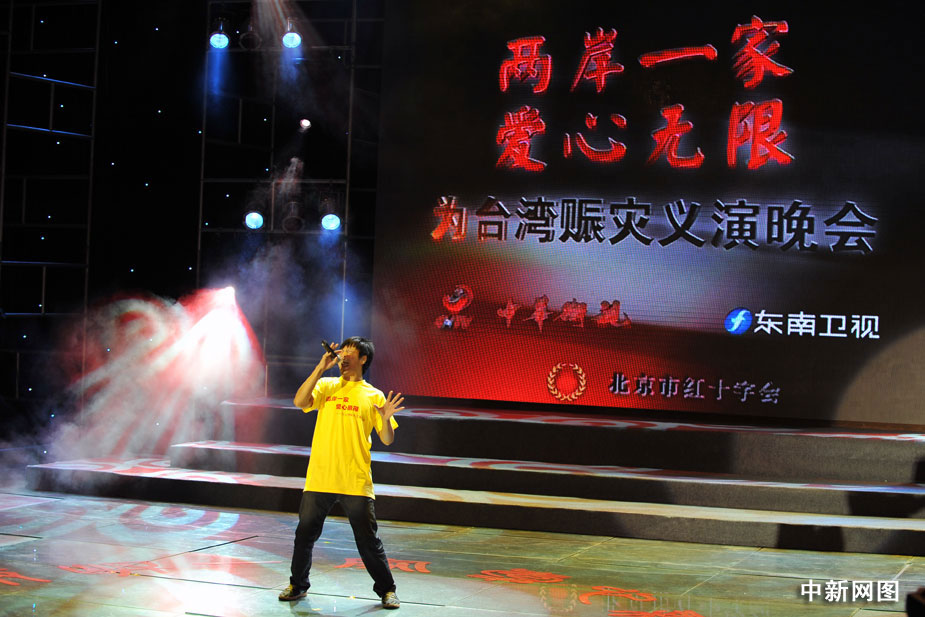 8月22日晚,北京舉行“兩岸一家 愛心無限”為臺灣同胞賑災(zāi)義演晚會,大陸和臺灣演藝界明星登臺為臺灣災(zāi)區(qū)同胞共獻(xiàn)愛心,晚會臨近結(jié)束時共收到各界捐款3000多萬元。中新網(wǎng)記者 金碩 攝