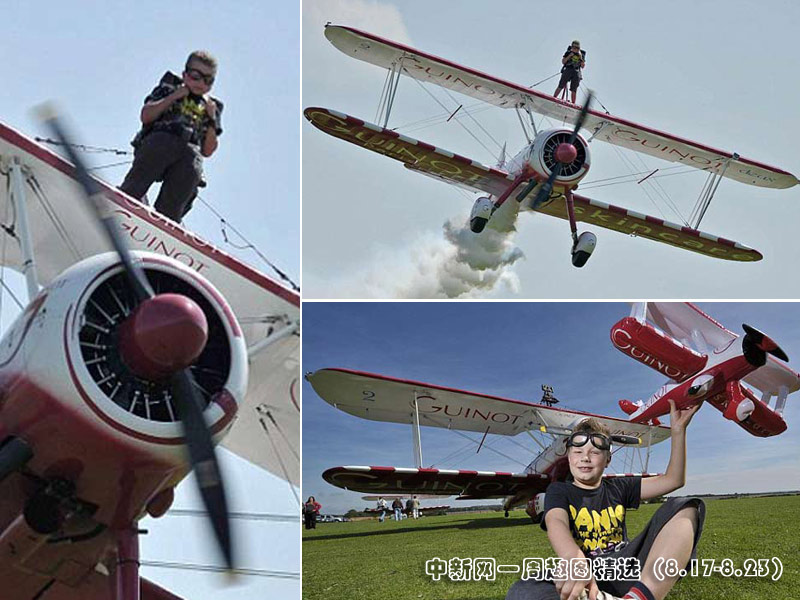據(jù)英國媒體19日?qǐng)?bào)道,在英國格洛斯特郡的一個(gè)飛機(jī)場(chǎng),8歲男孩Tiger Brewer站在他爺爺駕駛的飛機(jī)機(jī)翼上進(jìn)行了驚險(xiǎn)的空中表演。點(diǎn)擊觀看詳細(xì)內(nèi)容
