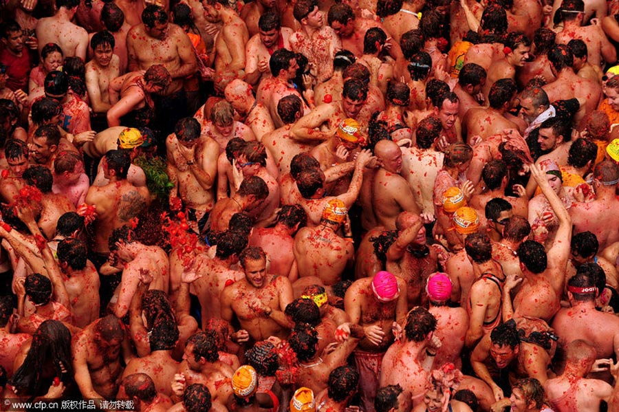 8月26日,西班牙東南部小鎮(zhèn)Bunol當(dāng)日迎來(lái)傳統(tǒng)的西紅柿節(jié)。大約4萬(wàn)名狂歡者在1小時(shí)內(nèi)扔掉了11萬(wàn)公斤西紅柿。來(lái)源:中國(guó)新聞網(wǎng)