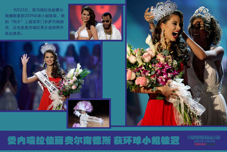 中新網(wǎng)本周熱點(diǎn)人物之——費(fèi)爾南德斯 8月23日,在巴哈馬拿騷舉行的2009環(huán)球小姐大賽中,委內(nèi)瑞拉小姐斯特凡尼婭·費(fèi)爾南德斯奪得桂冠。